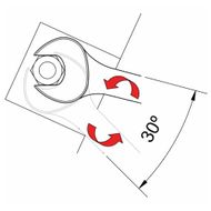 Use a chave perpendicular ao eixo do parafuso e/ou porca. Isto aumenta a vida útil da ferramenta e torna a operação mais segura.