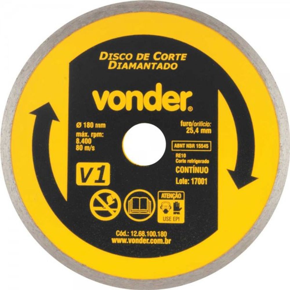 Disco de corte diamantado, 110 mm, contínuo, para porcelanato, XLD VONDER