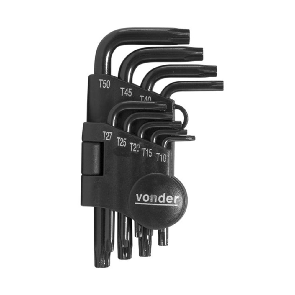 Jogo de chaves hexalobular, T10 a T50, com 9 peças - VONDER