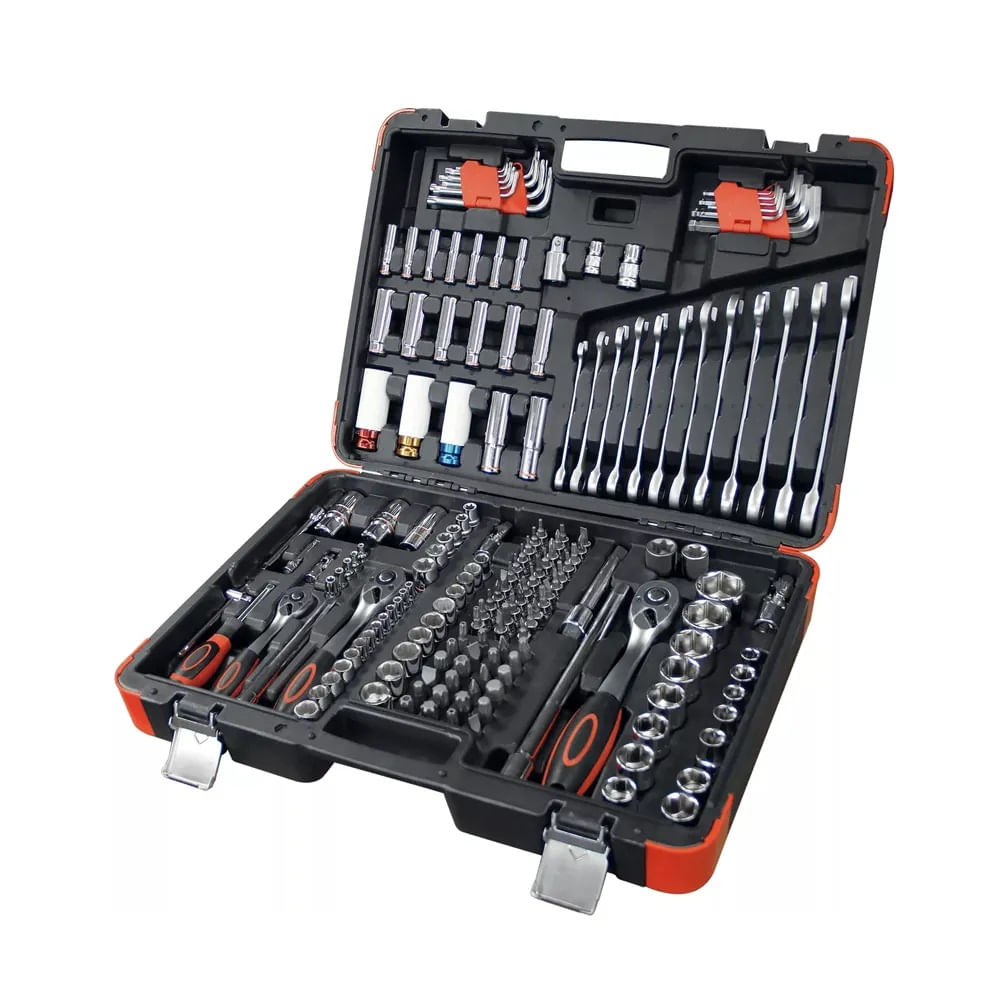 Composto por 178 peças essenciais para toda oficina, o jogo 5000R tem as três principais medidas utilizadas no segmentos Organizado em um prático estojo, garante fácil acesso e visualização. Contando com um amplo mix de chaves, soquetes e acessórios, nos diversos perfis, este jogo não pode faltar no seu cliente!